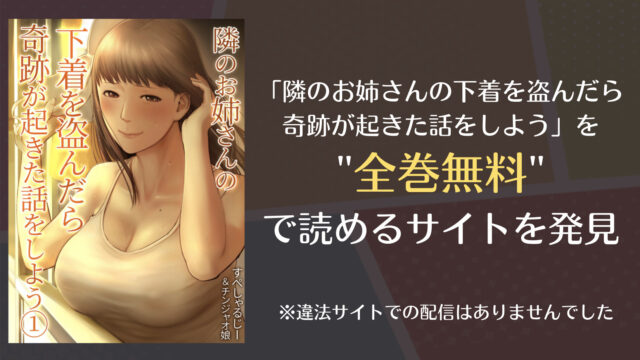 隣のお姉さんの下着を盗んだら奇跡が起きた話をしようが全巻無料!raw(漫画ロウ)・漫画バンクにはない?