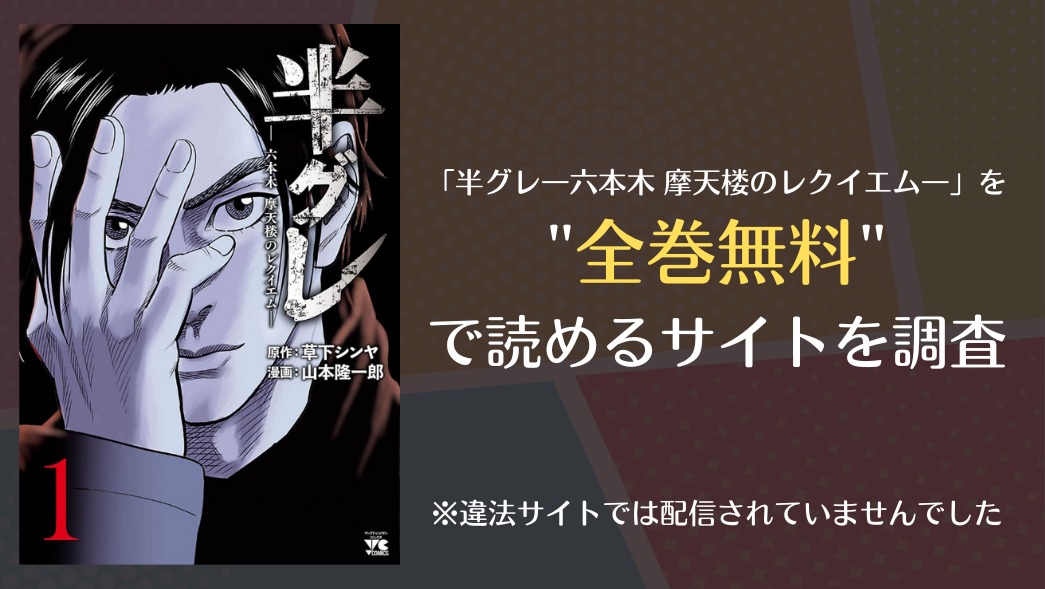 本記事では漫画「半グレ―六本木 摩天楼のレクイエム―」を全巻無料で読む方法が有るのかを調査しその結果をまとめています!