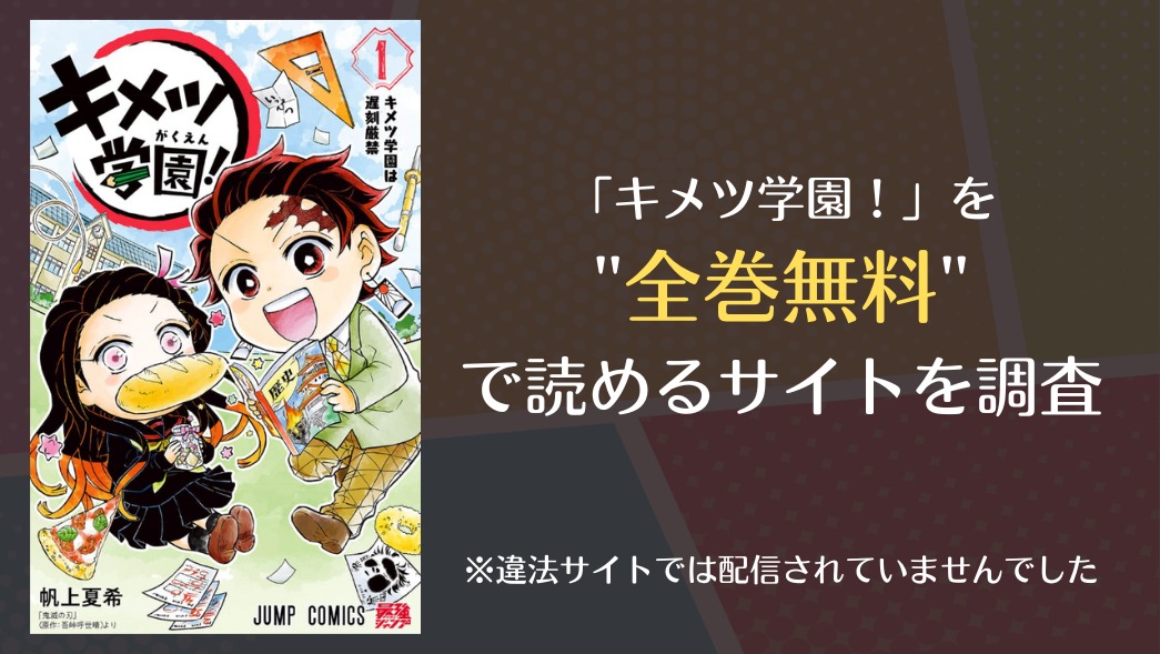 『キメツ学園!』が全巻無料で配信されているサイトはあるか調査してみた